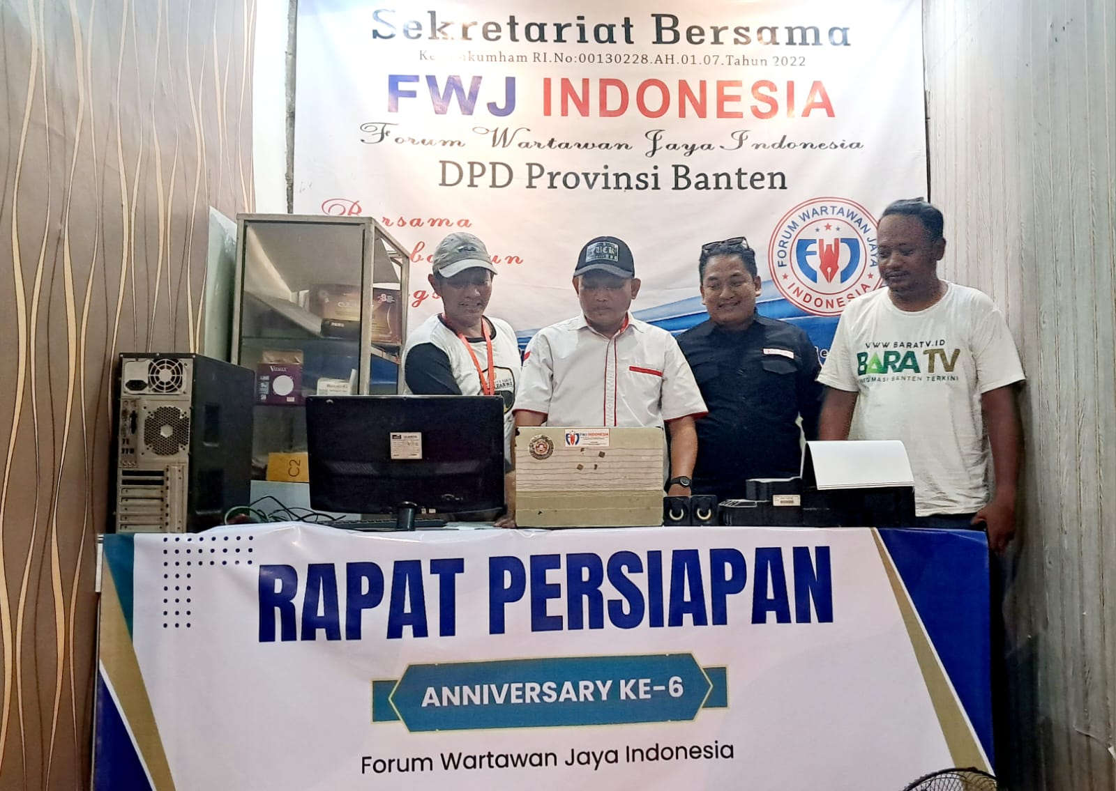 Banten| Sketsa-online.com — Panitia Anniversary ke-6 Forum Wartawan Jaya (FWJ) Indonesia menggelar rapat teknis untuk memantapkan persiapan kegiatan yang akan diselenggarakan pada 28–29 Juli 2025 di Pesona Krakatau Anyer, Banten.