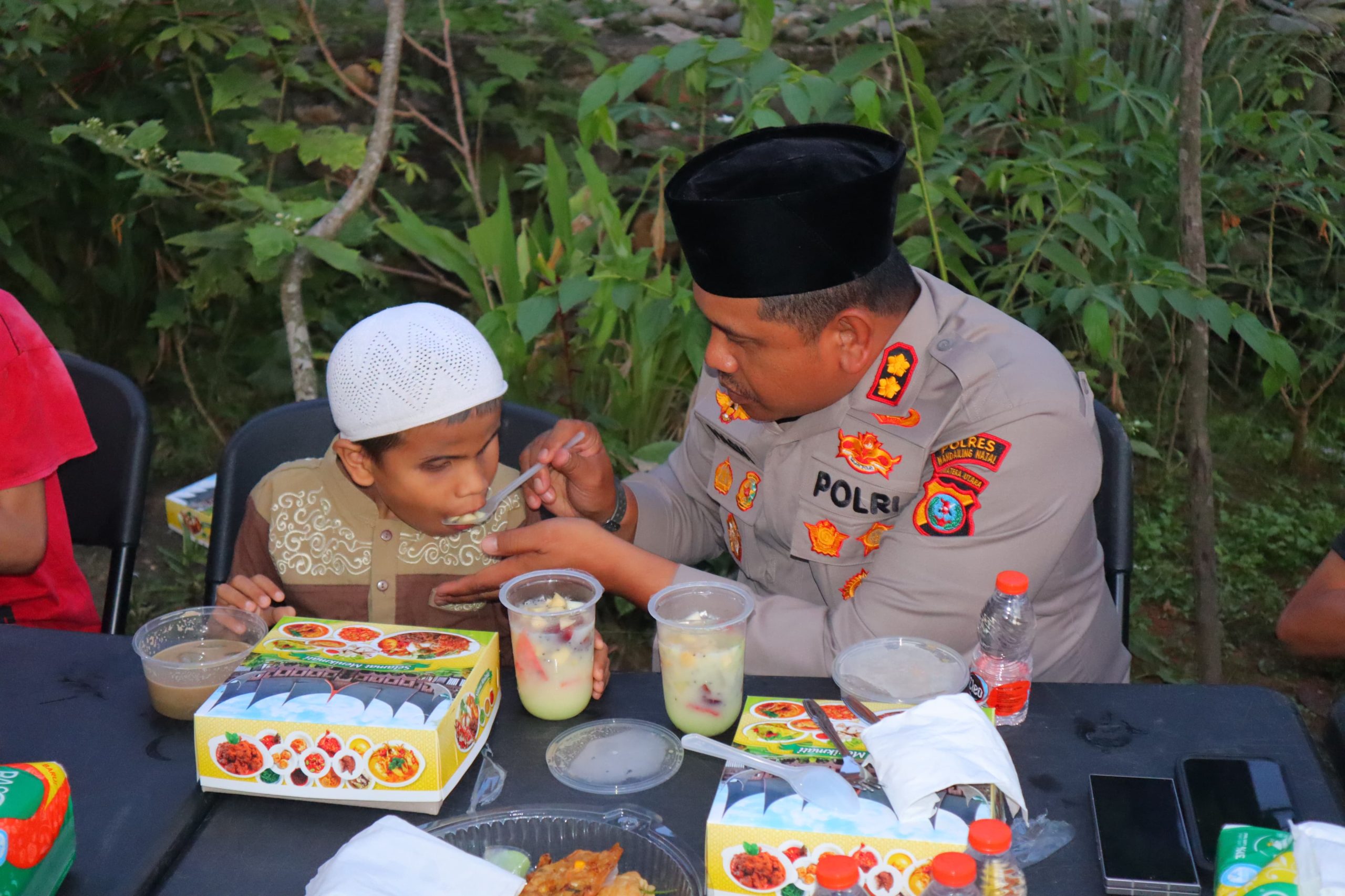 “Alhamdulillah wa Syukurillah, bersyukur kepada Allah SWT hari ini kita dari Polres Madina dan pengurus Bhayangkari masih bisa bertatap muka dengan keluarga Pak Mukhsin dan Ibu Netty beserta para anak-anaknya. Tidak terasa, tahun lalu saya juga ke sini, dan tahun ini kembali dipertemukan dalam momen yang sama. Duduk sama rata menikmati makanan pada buka puasa yang begitu sederhana,” kata AKBP. Arie Sofandi Paloh, S.H, S.IK.