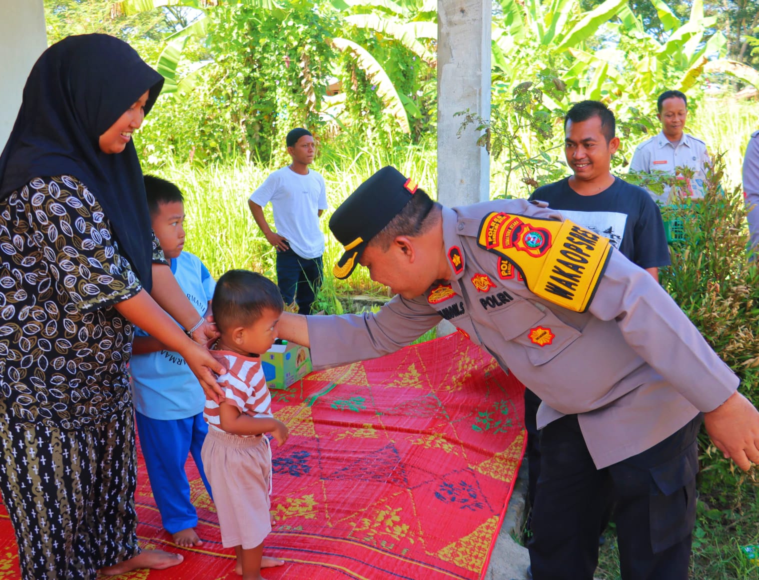 Polres Madina Peduli dipimpin Waka Polres, Kompol Marluddin, dan sejumlah pejabat utama Polres Madina menyerahkan bantuan tali asih, sembako, perlengkapan rumah, obat-obatan dan mainan anak-anak kepada pemilik rumah yang terbakar, Jum’at (8/11/2024).