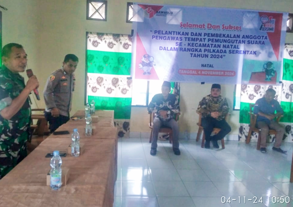 Sementara itu, Ketua Panwaslu Kecamatan Natal, Ilham Saputra, M.H menyampaikan, Pengawas TPS selaku garda terdepan dalam pengawasan jalannya penyelenggaraan demokrasi, penyaluran aspirasi melalui hak pilih untuk tetap menjaga netralitas dan integritas.
