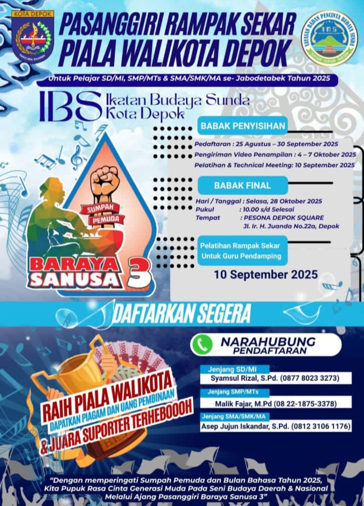 Depok|Sketsa-online.com – Gelaran Pasanggiri Rampak Sekar Piala Wali Kota Depok 2025 tak sekadar meriahkan panggung seni. Ajang budaya ini dinilai memiliki peran strategis dalam menumbuhkan kecintaan pelajar terhadap seni tradisi Sunda sekaligus memperkuat karakter generasi muda.